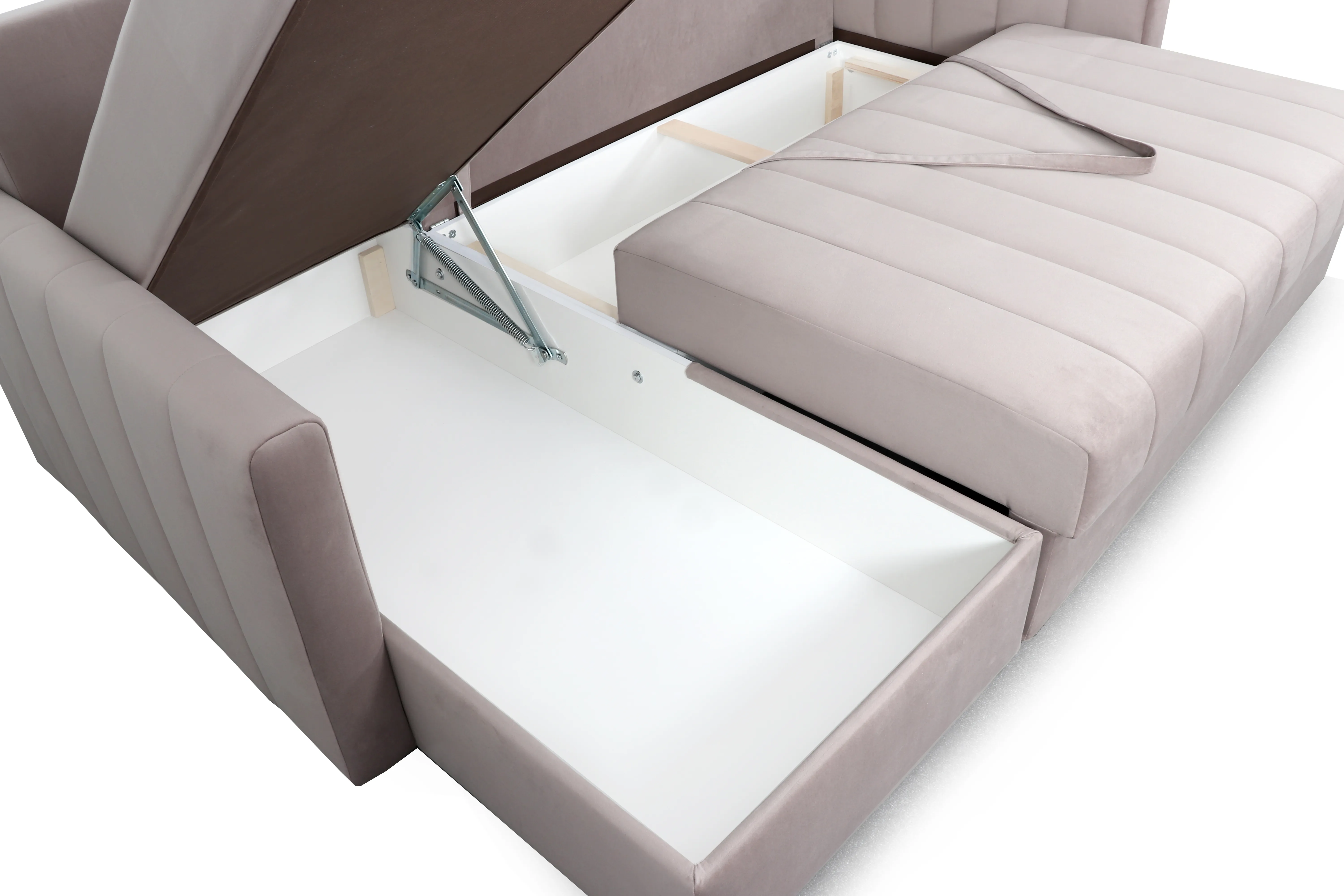 Диван удачно зонирует пространство и дополняет необходимым функционалом. В основании спального места блок независимых пружин для комфортного сна. Вместительный ящик для хранения постельных принадлежностей.